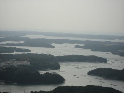 R167を走っていると、りっぱな「横山展望台」と書かれた看板があります。その指示どおりに行くと、横山ビジターセンターがあり、その横から少しの間ですが、せまい道を車で上っていきます。駐車場で車を降りて、階段を上がっていくと、英虞湾の眺めが眼下に広がりました。階段の横にはスロープもあり、車イスでも展望台へ上がれます。