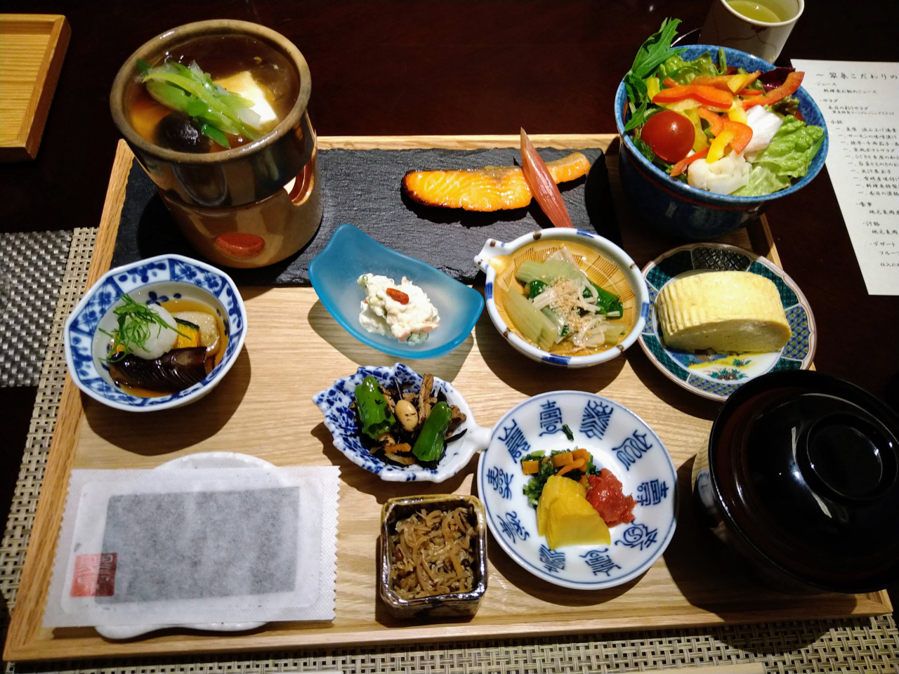 月がわりの夕食も豪華で美味ですが、朝食もとっても楽しみです。趣向をこらした色とりどりのおかずと共にいただく、白ごはんが美味しくて、元気になります。