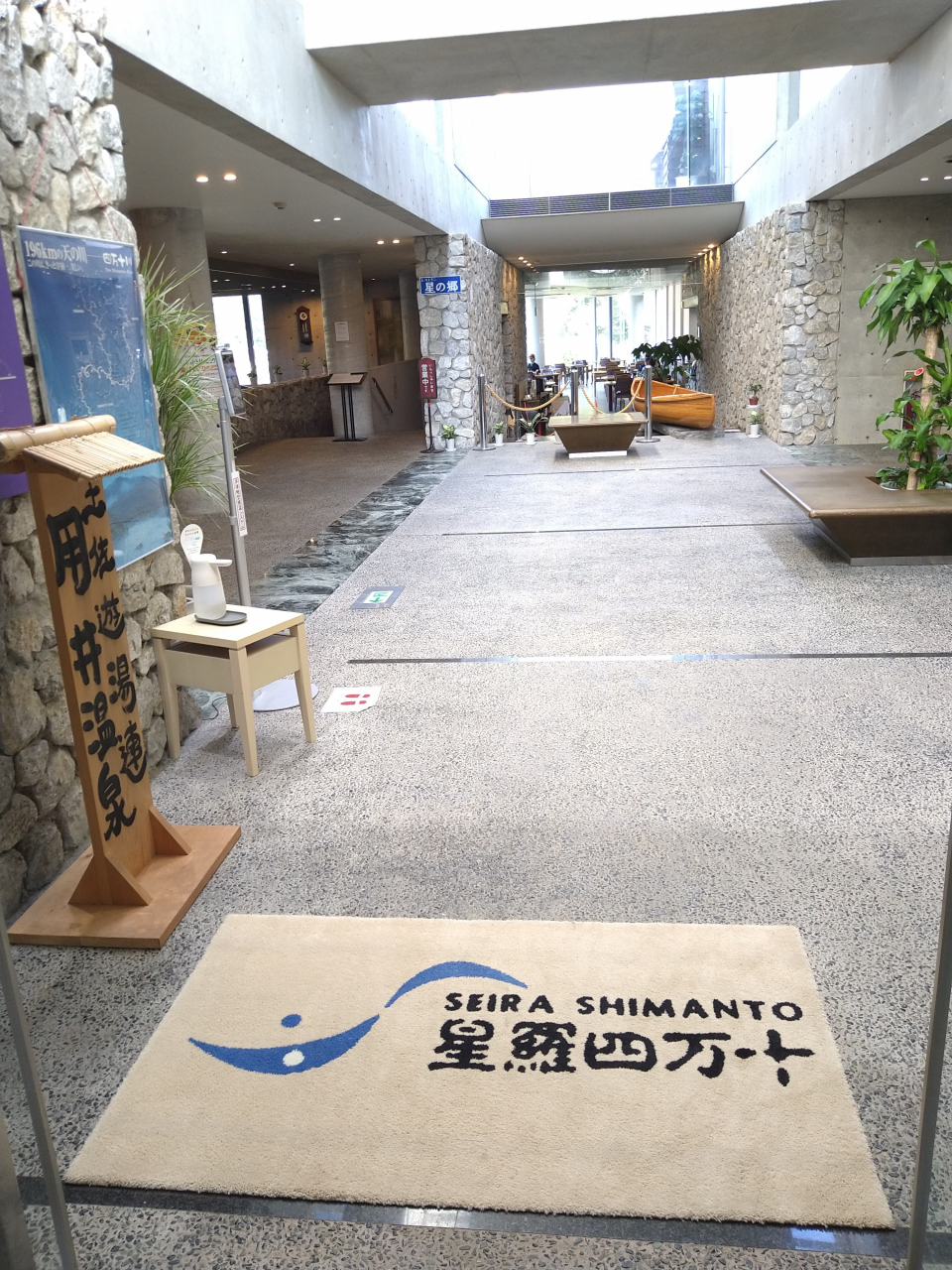 ホテルは愛媛県と高知県の県境に建っていて、館内に県境の線がひいてありました。
