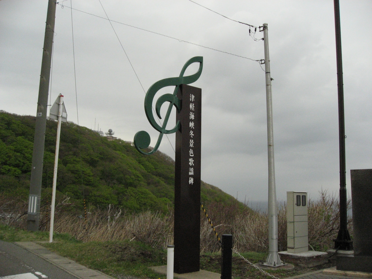 すっごい強風の中に歌謡碑はありました。