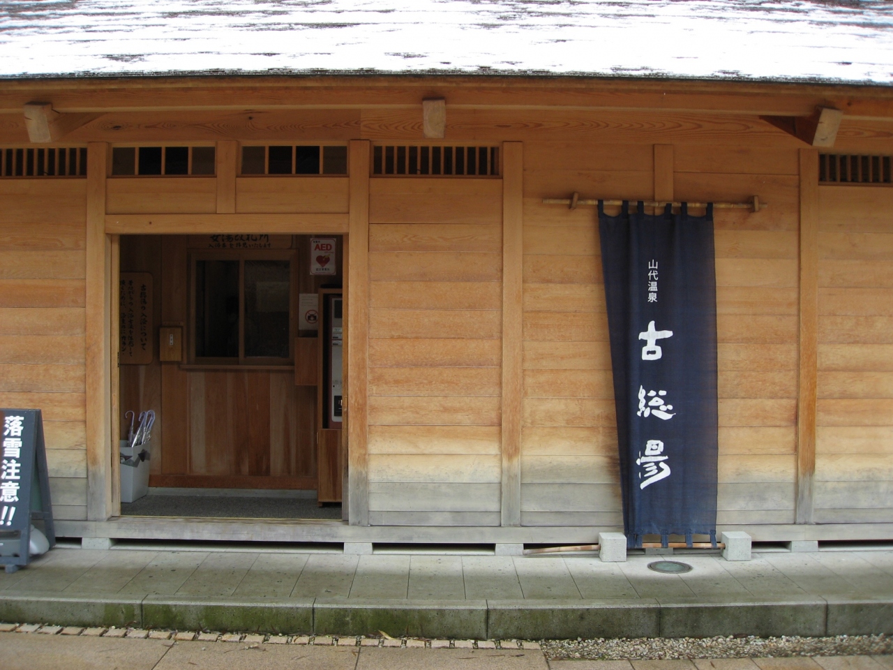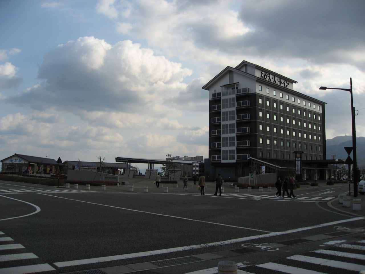ロータリーの周りには、山代温泉の有名旅館がずらりと並びます。