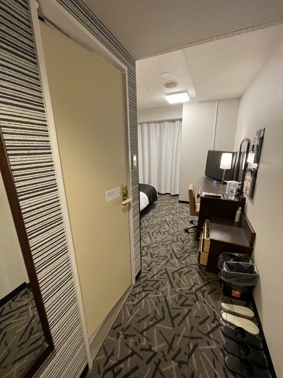 別のホテルを改装した感じで、新築のアパホテル的な間取りではないです。少し部屋が広い感じかな。