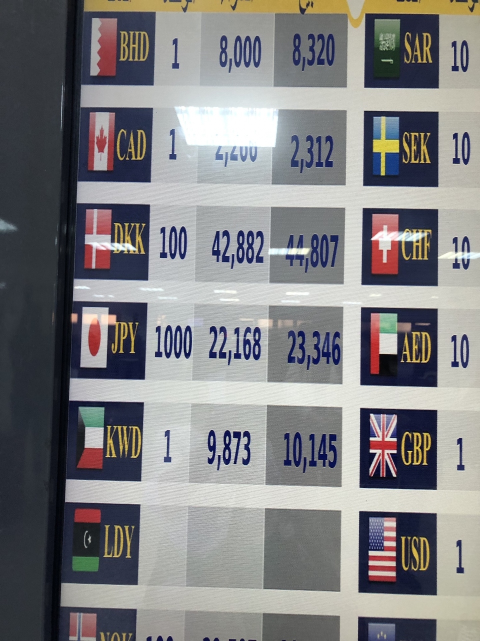 日本円は空港でしか取り扱われていないと旅行本にありましたが、4つ星以上のホテルでレート表示があるフロントで両替できます。空港より率が少し良いです。キャッシングのATMは中心地に行くと少し見られるが不安を感じる。