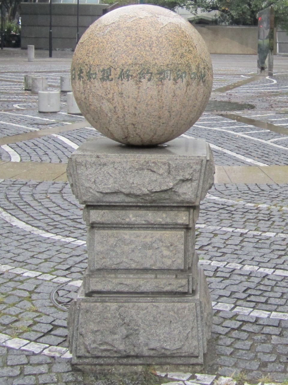 日米和親条約締結の地は、横浜の開港広場の中にあります。江戸時代の鎖国を終わらせた、社会の教科書にでてくる「日米和親条約」がここで締結された場所だなんて感激しました。丸い石碑が目じるしでしっかり「日米和親条約締結の地」と入っていました。