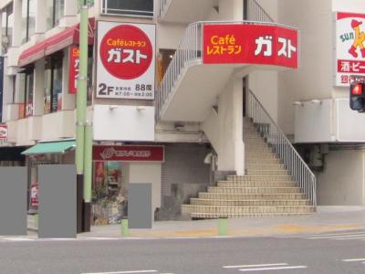 ガスト (横浜元町店)は、JR根岸線の石川町駅北口から元町のほうへ行き、元町の入り口あたりにあるガストです。階段を上った2階にあります。朝7時から夜中の2時まであいているので便利なお店です。