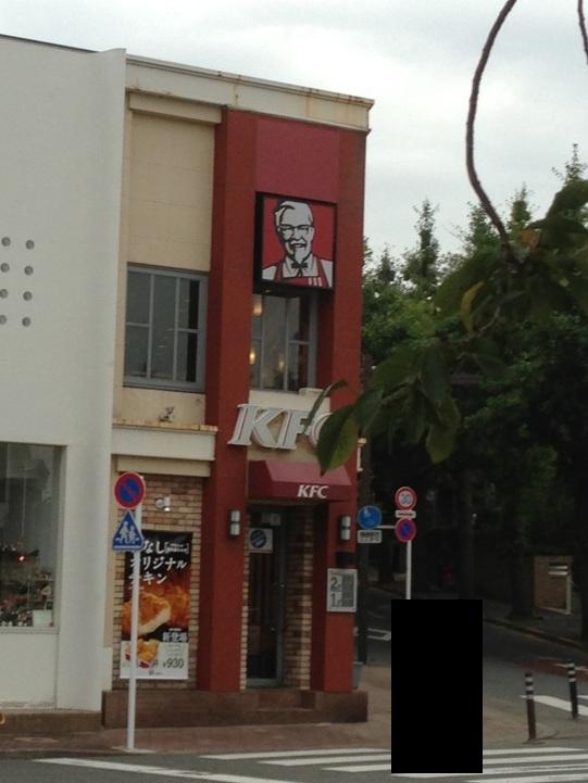 ケンタッキー フライドチキン田園調布店は、東急田園調布駅を出て、階段をのぼり、車で送迎されるであろうロータリーのあるほうへ行くとあります。田園調布らしい放射状の道のある高級住宅地のほうです。