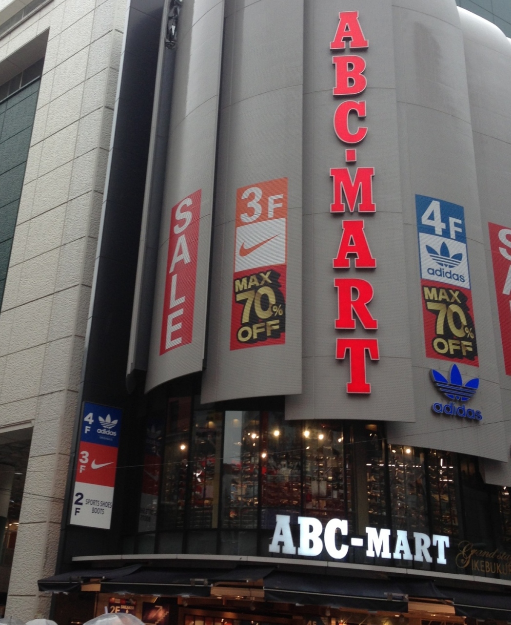 ABCマート Grand Stage池袋店は、池袋のサンシャイン60通り沿いにある靴のお店です。2012年4月にオープンした1Fから4Fまである、フラッグシップストアです。