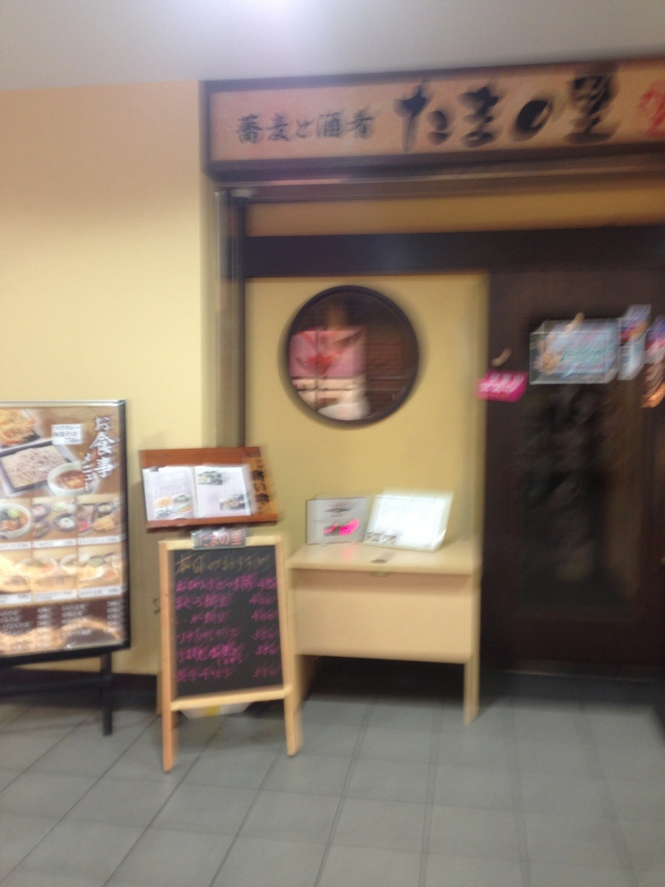 たまの里多摩センター店は、京王多摩センター駅のすぐそば高架下あたりにあります。お蕎麦のお店ですが「蕎麦居酒屋」を名乗っているだけあって、お刺身や小鉢料理もたくさんありました。