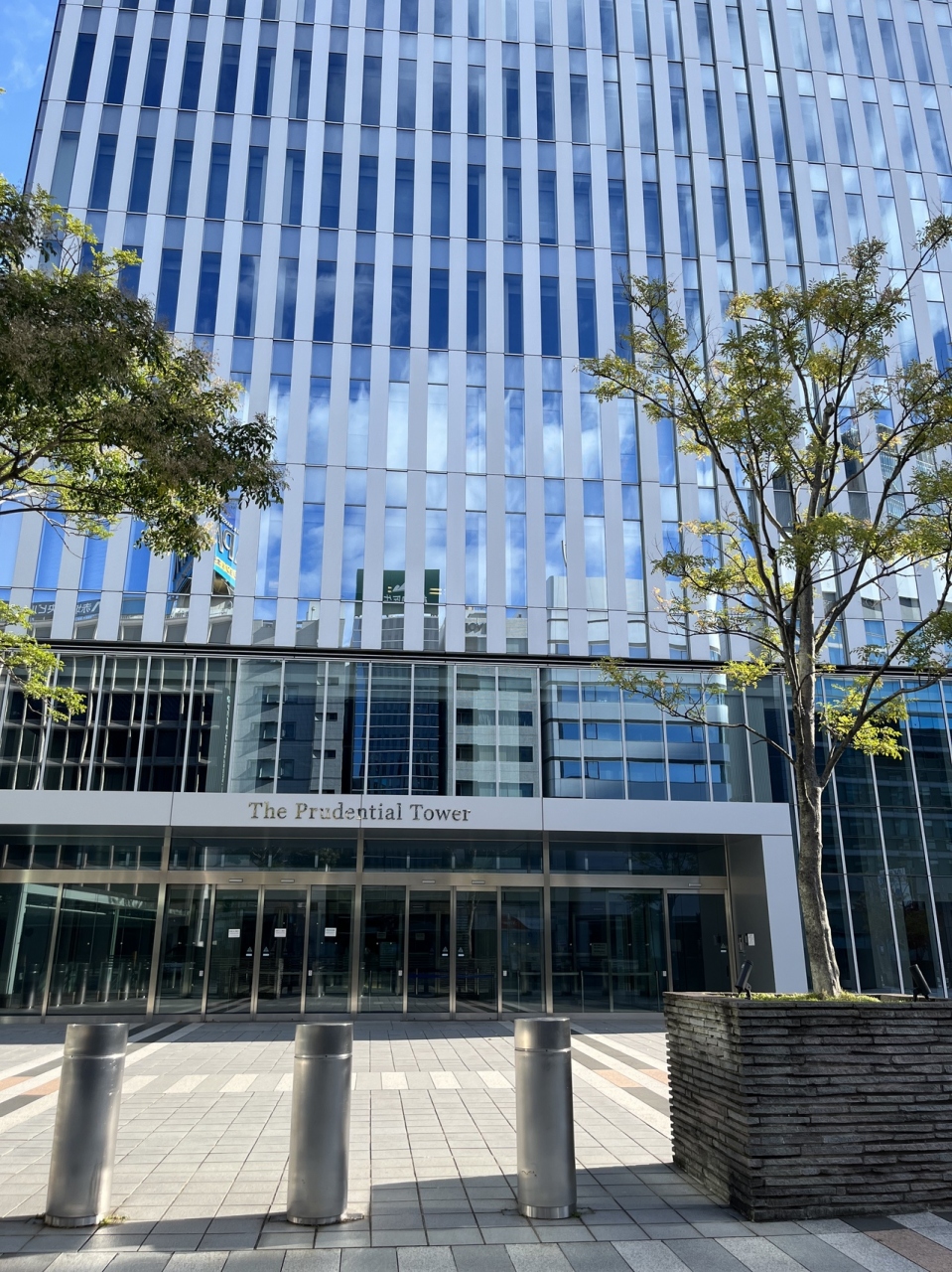 プルデンシャルタワーは、東京都千代田区永田町2丁目赤坂見附駅直結の38階建のビルで、オフィスやマンション、カフェも入っています。タワーのそばには公園のような施設もあり都会的でとてもきれいでした。