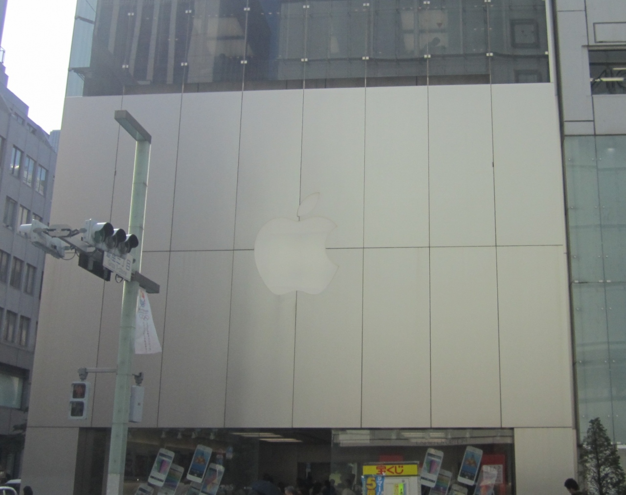 アップルストア 銀座は銀座の中央通り沿い、銀座松屋の向かい側あたりにあります。アップル社のものがたくさん展示されています。