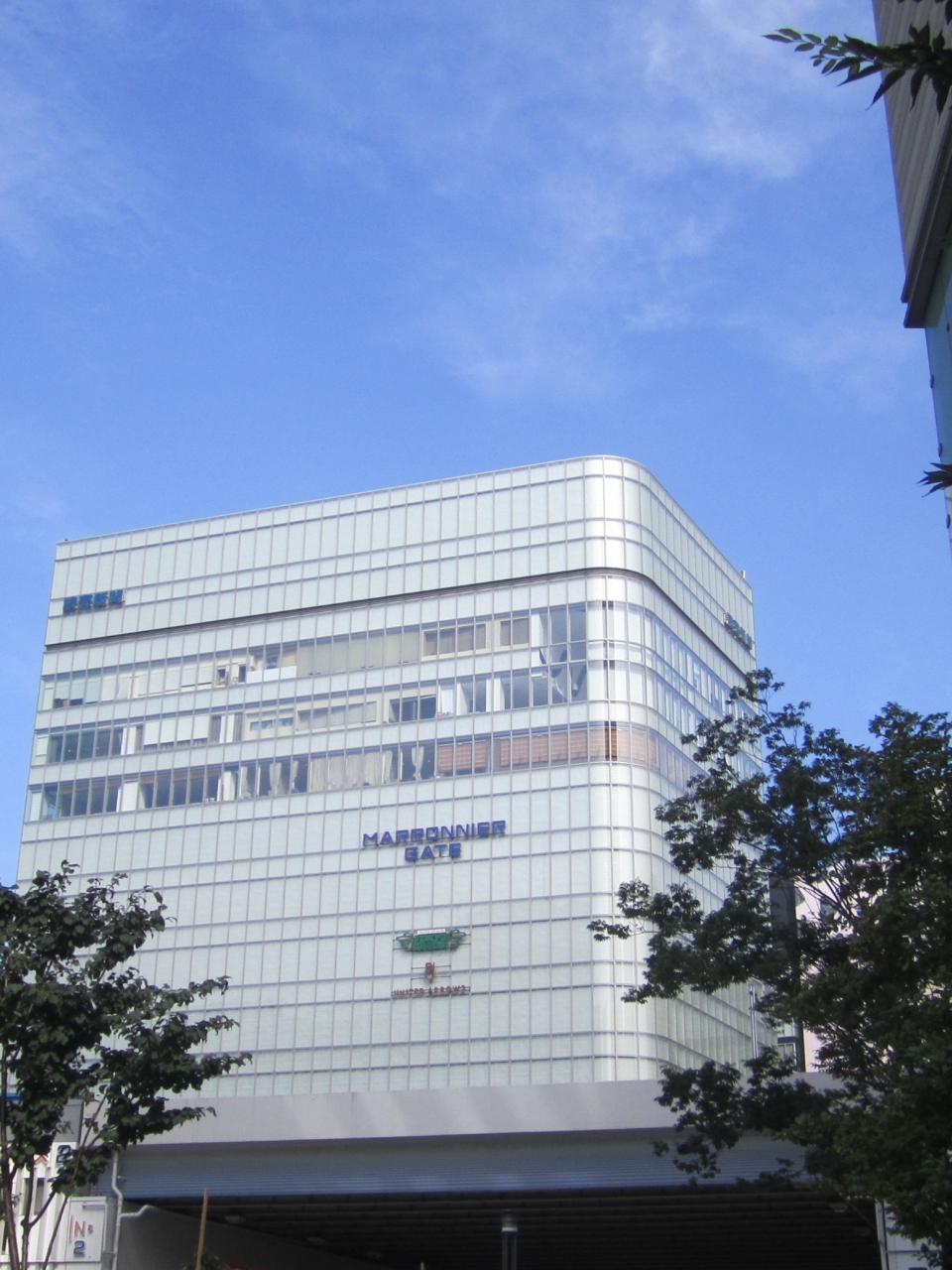マロニエゲートはJR有楽町からプランタンのほうへ行ったところにある地上12階のビルです。大体、~4Fに洋服とかのお店・5F~9Fに東急ハンズ・10F~がレストランというように分かれています。