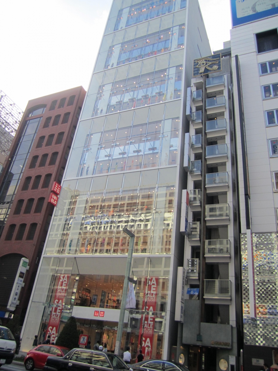 ユニクロ (銀座店)は銀座の中央通りにあります。1Fから12Fまであります。巨大なウィンドウディスプレイが素敵です。