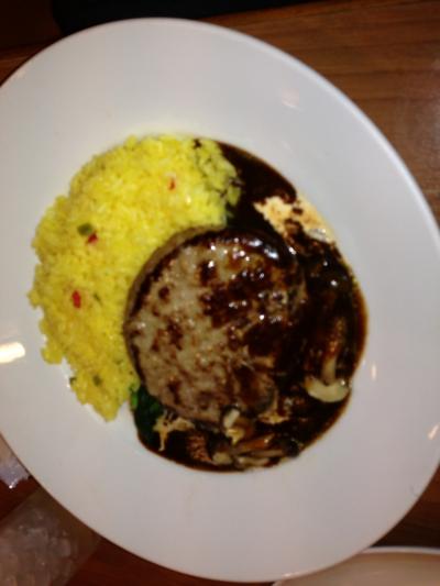 きのこハンバーグプレートを食べました(少しほうれん草だけ食べてしまってから写真をとりました・・すみません)- 旅行時期