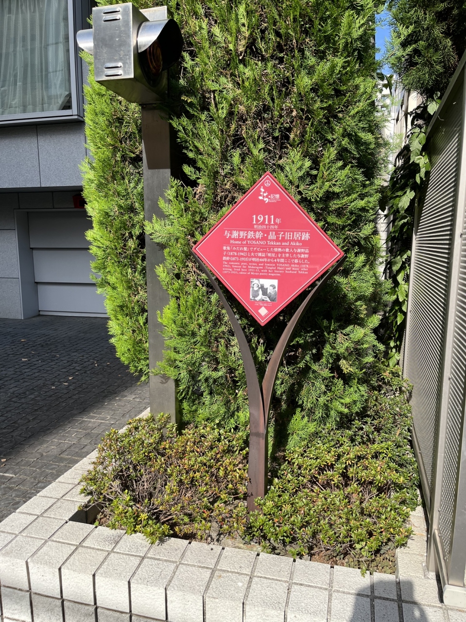 与謝野鉄幹 晶子旧居跡と書かれた看板が、東京都千代田区四番町にありました。