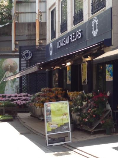 フランスパリ生まれのお花屋さんモンソーフルールの本店です。「MONSEAU FLEAURS」というロゴが素敵でレストランかと思ってしまいました。