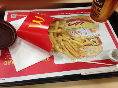 晩ご飯どきだったので空いていて、すぐでてきました。残念なことにポテトがつくりおきされていてシナシナになっていて、、、