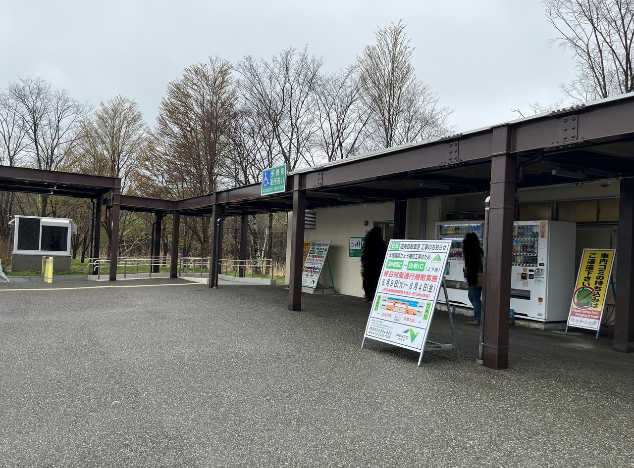 トイレしかないシンプルなパーキングエリアなのですが、GWだったせいかお店が臨時っぽいお店が出店していてザンギとか売っていました。- 旅行時期