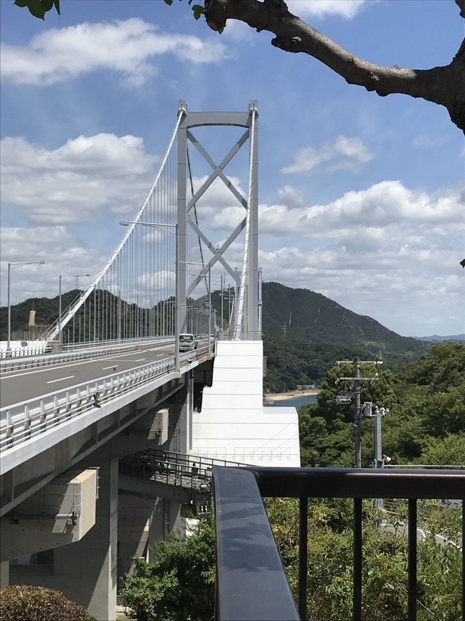 因島大橋は、広島県尾道市因島大浜、広島の因島と向島を結ぶしまなみ海道沿いの橋です。車で通りましたが通行量がかかります。便利なだけではなく美しい景色も見られる橋です。