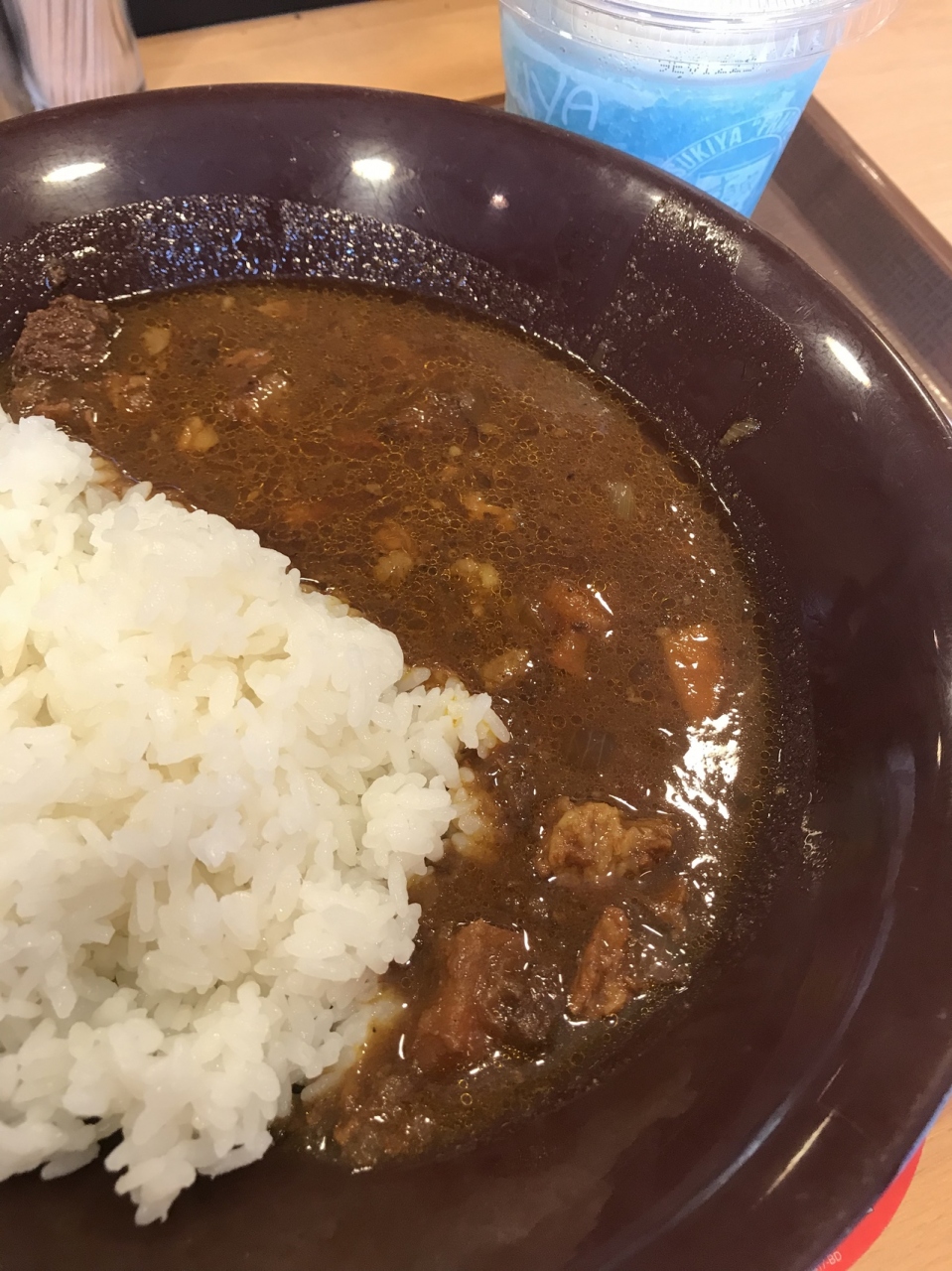 すき家のカレーが意外と美味しいと聞きガッツリ食べたかったので入ってみました。本当に美味しかったです。おばちゃんにはミニの方がよかったかもですが。