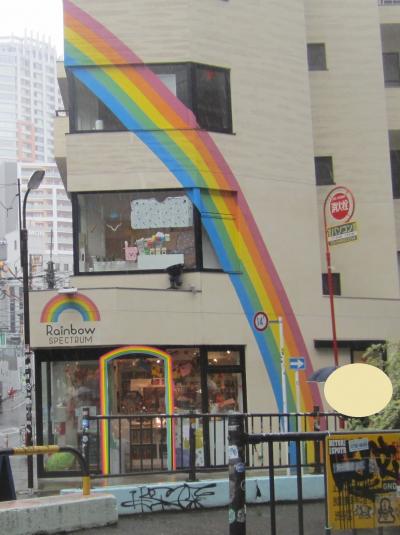 レインボースペクトラムの渋谷店が、東京都渋谷区神宮前5丁目、原宿と渋谷の中間あたりにありました。虹の描かれた壁が目立っていてすぐわかります。