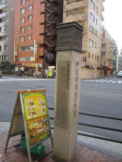 甲武鉄道 飯田町駅の碑が、東京都千代田区飯田橋、目白通り沿いにありました。