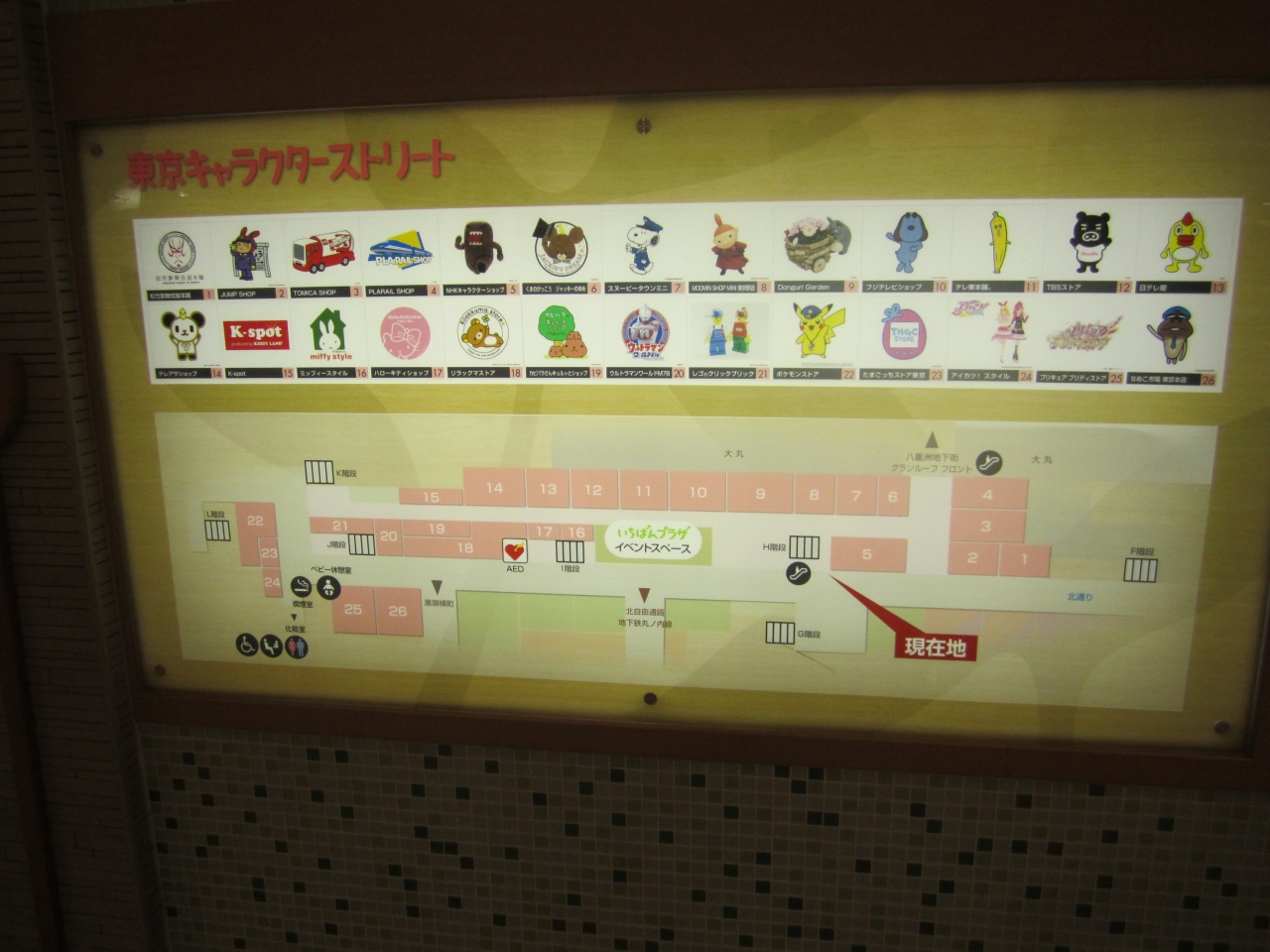 東京キャラクターストリートは、JR東京駅八重洲口側にある東京駅一番街の地下1階北通りにあります。
