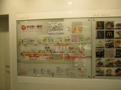 東京駅一番街は、JR東京駅八重洲地下中央改札口前にあります。おみやげやさんやキャラクターショップ、レストランなどがそろっていて、ここに来れば日本をひととおり見学したくらいの気持ちになりそうです。結構広いです。