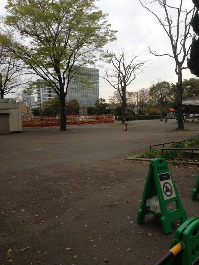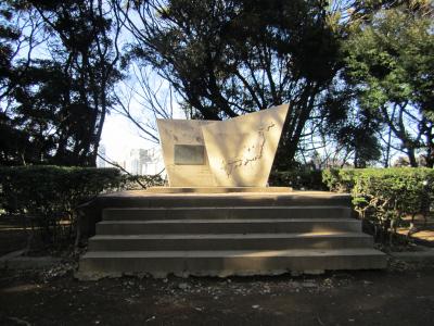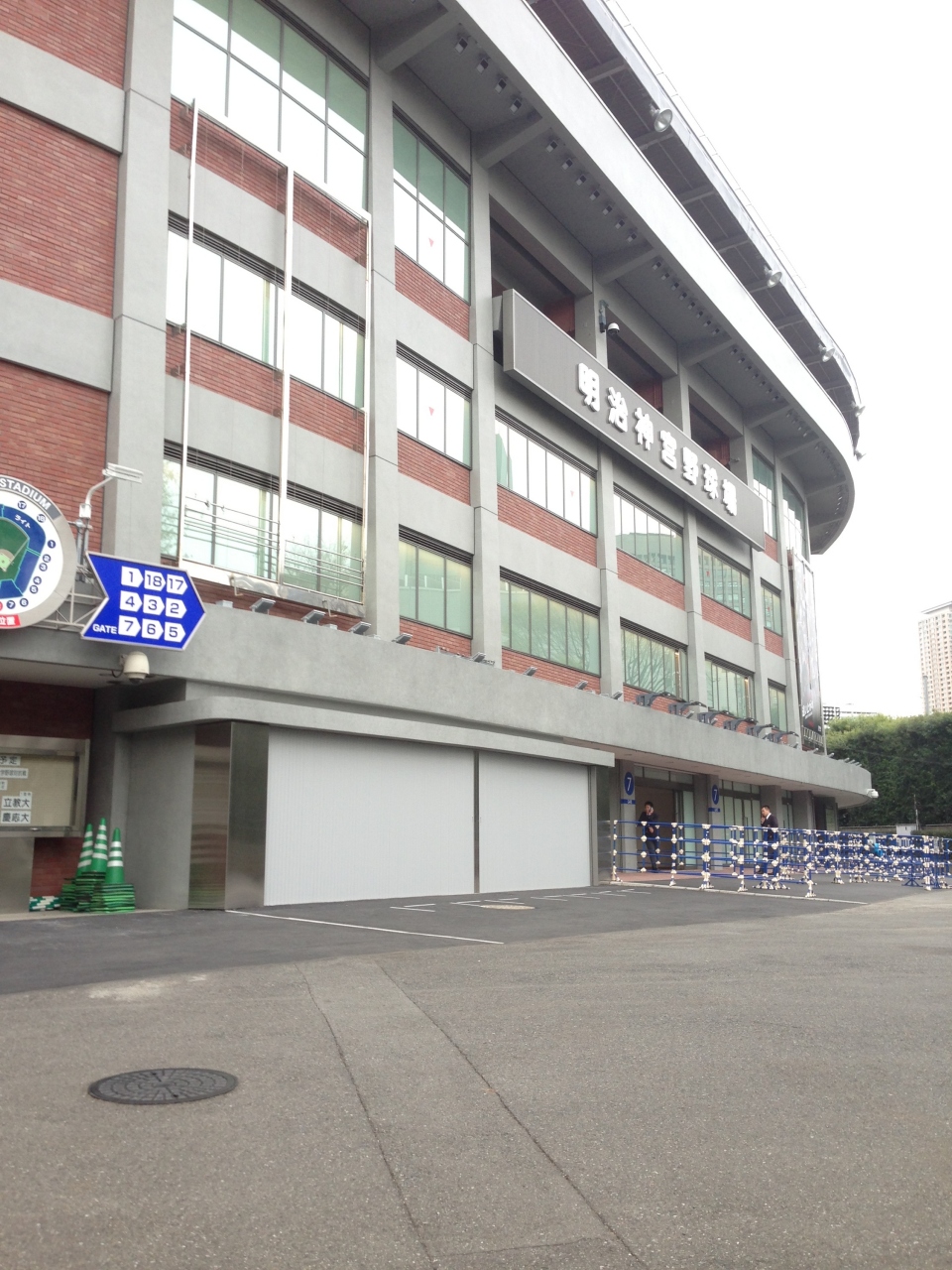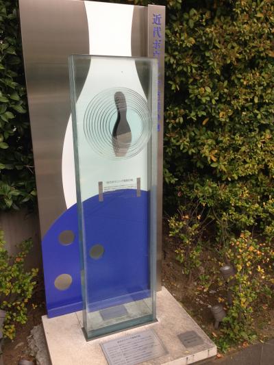 近代ボウリング発祥の地の碑は、外苑前駅から神宮球場のほうへ向かい、手前の右側あたりにあります。