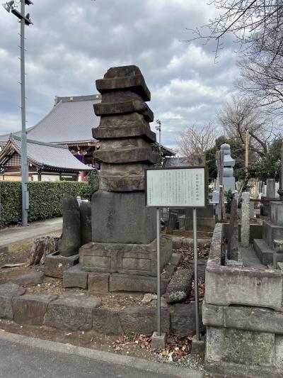 前田利家室層塔 (池上本門寺)は、東京都大田区池上1丁目、池上本門寺のお墓が多くある地帯にありました。大田区文化財になっているそうで、案内の看板がありました。