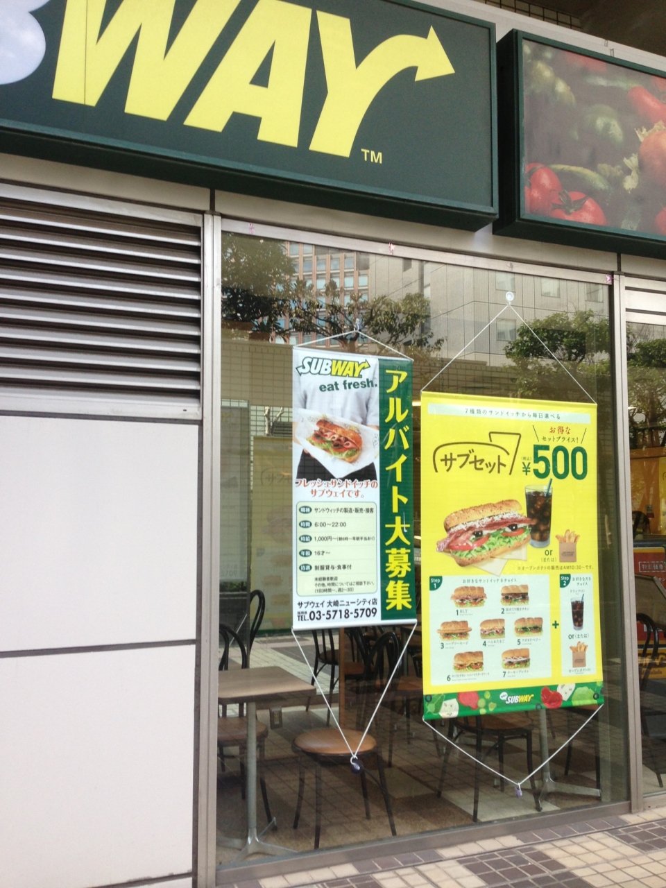 サブウェイ 大崎ニューシティ店は、大崎駅に近い大崎ニューシティの三階の噴水広場の前にあります。