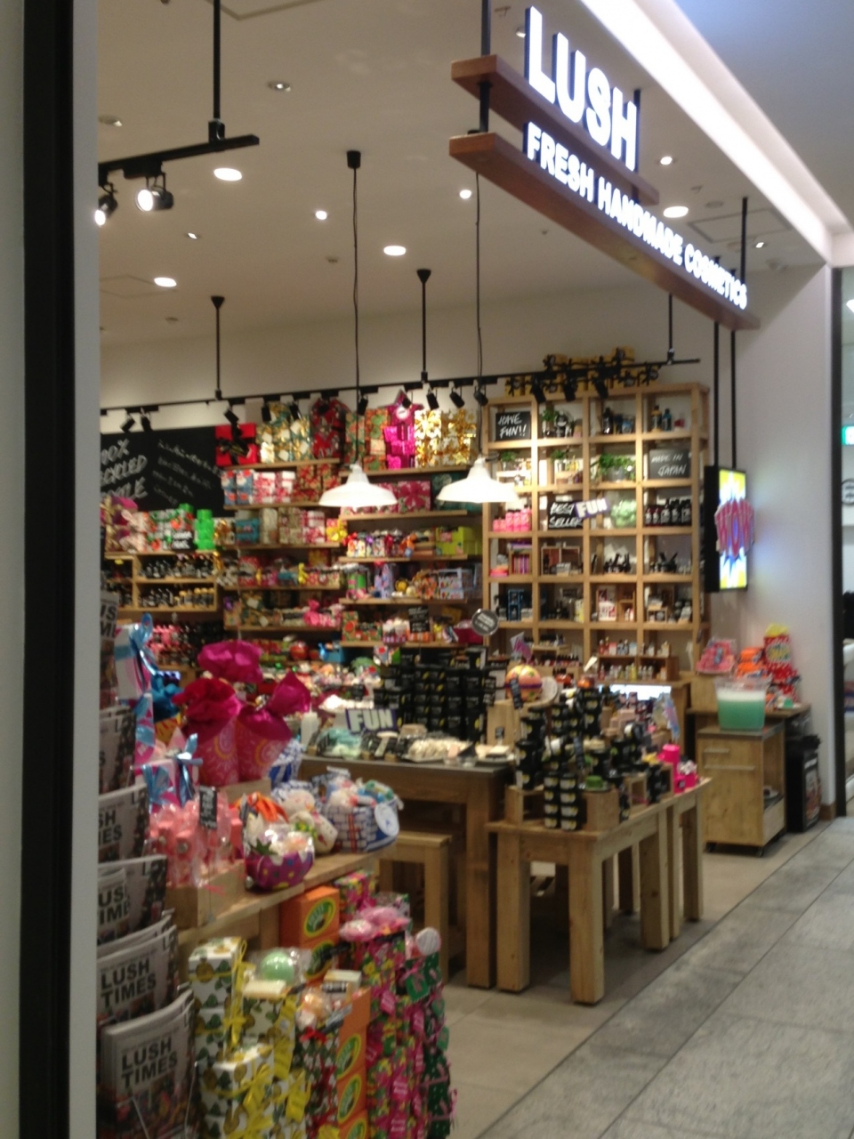 LUSHはフレッシュハンドメイドコスメのお店として有名で、美味しそうな石けんや入浴剤がたくさん売られていました。