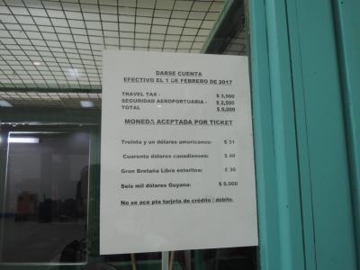 この空港からの出国税は2017年に入り値上げされ、6,000ガイアナドル、USドルなら31ドルとなったので注意。- 旅行時期