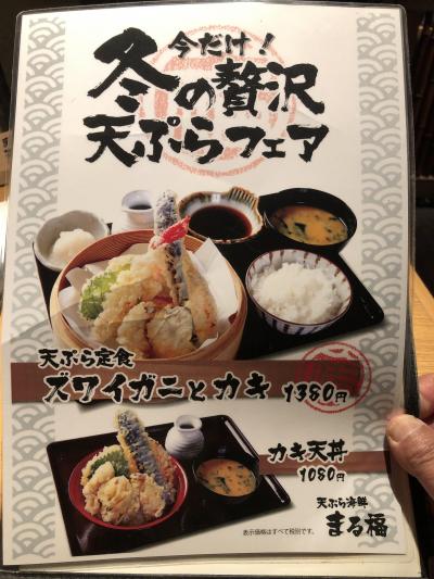 ランチでもディナーでも、ちょっと天ぷら食べようか、という時に行きます。この日は冬だったので期間限定の牡蠣天丼。牡蠣の天ぷらが想像より大きくて、しかもふっくらジューシーで、ポイント高かったです。ランチ時間は、高菜や明太子の食べ放題も付いていました(2019年6月現在、明太子食べ放題はやめたようです)。