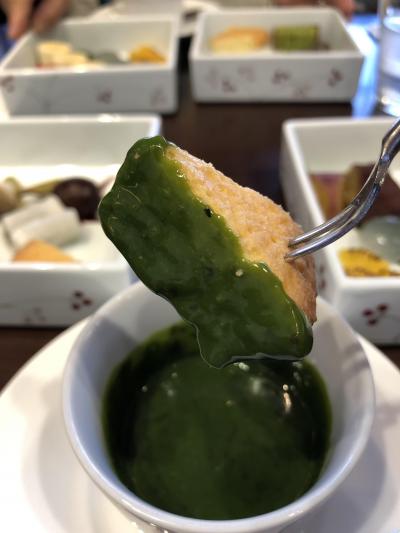 これが思ったより美味しい。抹茶ソースが甘すぎず、抹茶独特の苦みや香りが心地よく口に広がります。もちろん、見た目も綺麗で、「どれから食べようかな〜」ってなもんです。