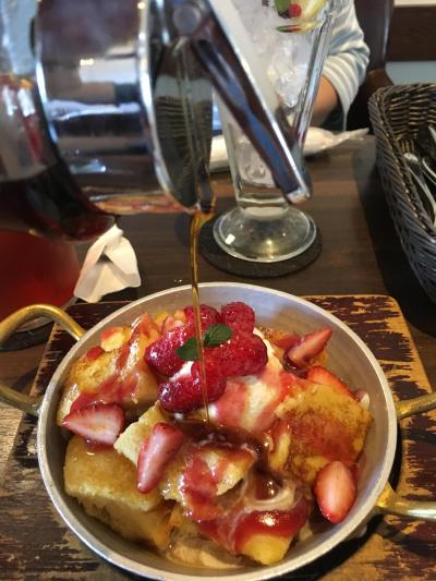 昼食後のデザートのつもりで入店。イチゴフェアーとかやってて、イチゴのパンケーキっぽいデザートをいただく。パンケーキにたっぷりのイチゴとアイスクリーム、そこにメイプルシロップをたっぷりかける。見た目ほど甘くもなく、すんなり食べられる。昼過ぎだったがとても混雑していた。一緒にいただいたベリー系のアイスティーがかなりポイント高し!