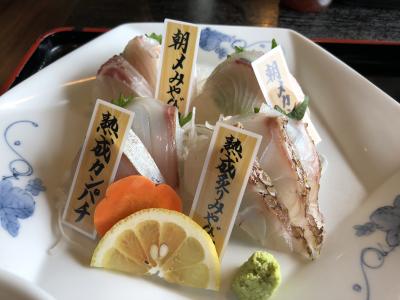 天草へ行く途中に立ち寄りました。熟成のお刺身というのが売りとの情報で、そちらのセットをいただきました。