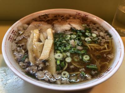 出先で探して入ったラーメン店。扉のない店舗で、一瞬倉庫かと思った。ラーメンは京都によくある中華そばっぽいもので、味はおとなしめというか薄め。その分出汁はちゃんととってあるが、いまいち特徴に欠ける。昼時を過ぎたあたりで店員さんも一息ついていた頃なのか、客が少なかったので、店員さんにジロジロ見られてる感があって落ち着かなかった。
