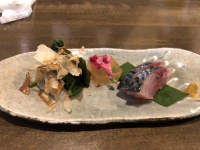 これが抜群に美味しい!タイとカンパチ、それぞれ朝〆と熟成の2種、計4種のお刺身の食べ比べをできるのですが、熟成が圧倒的に美味しいのです。運転さえなければ昼間から飲んでます(笑)。