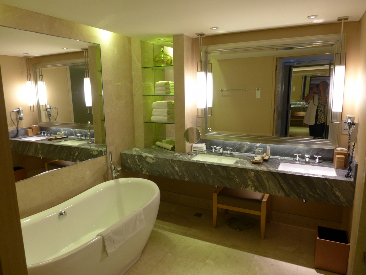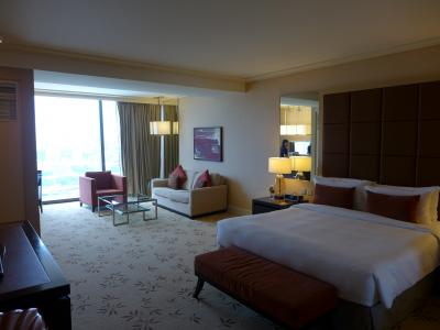ロビーに入るなりその広さに圧倒されます。部屋はあらかじめシティービューをリクエストしてましたが、タワー2の42階でした。ロビーに続いて部屋の広さにも驚きました。外側は全面ガラス張りで、まるで宙に浮いているかのような錯覚を覚えます。夜は高層ビル群の夜景がとても美しかったです。