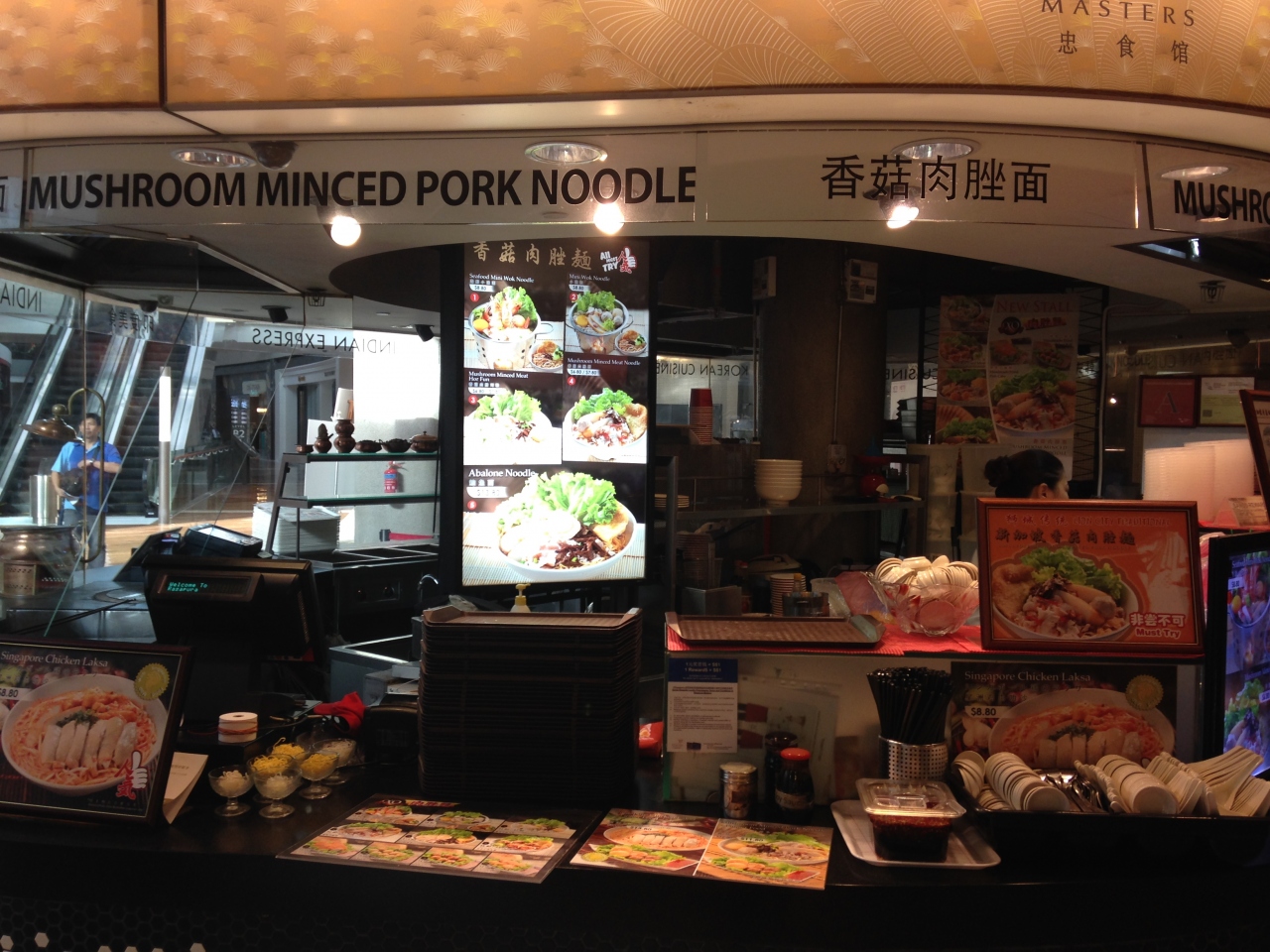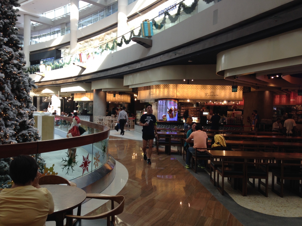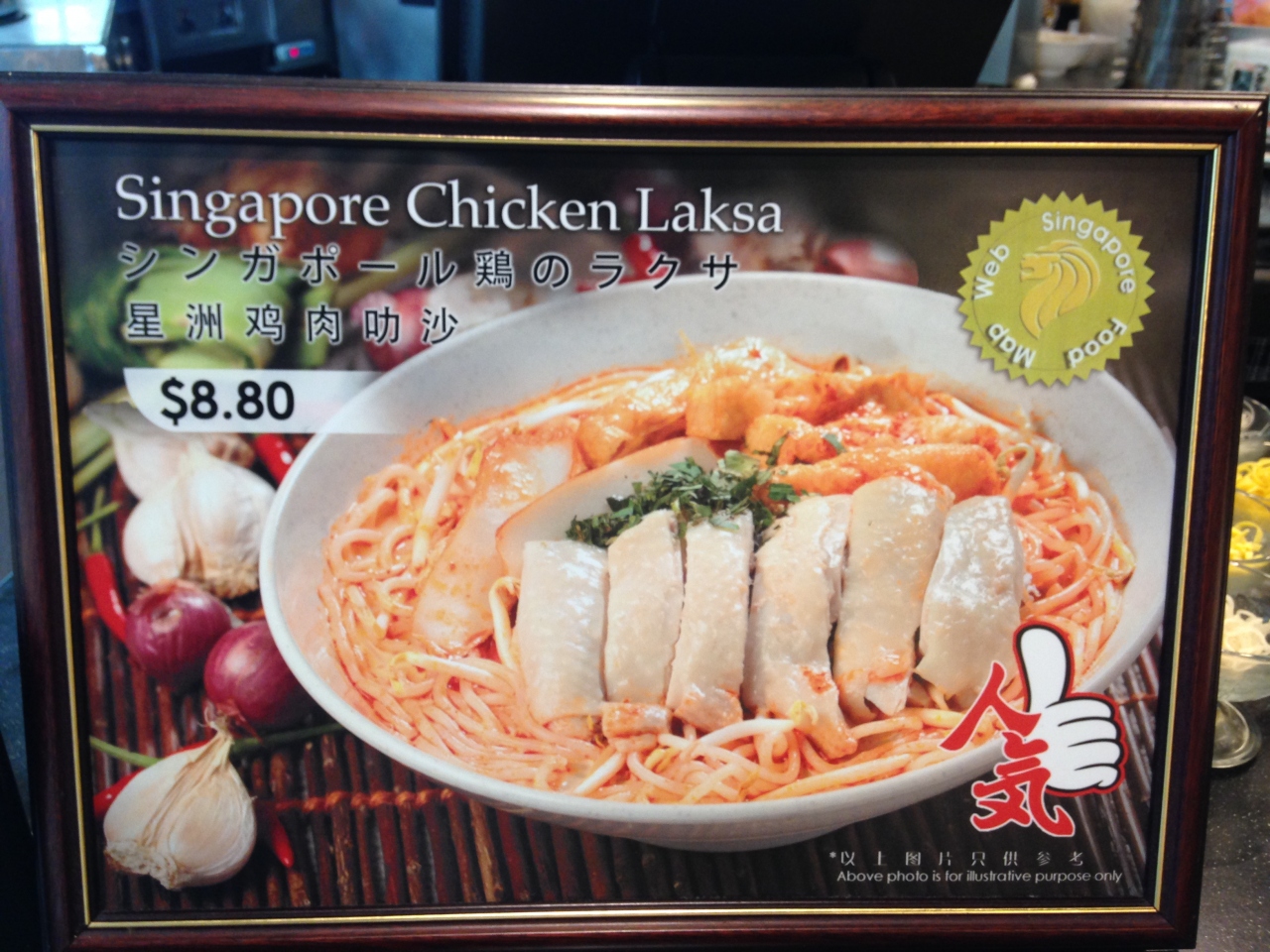マリーナベイサンズのショッピングモール内、スケートリンクを囲むようにしてある大型フードコートです。地元料理を中心にたくさんのお店がありますが、似たような料理店がいくつも重複しているように思います。価格は周辺のレストランに比べれば安いでしょう。知らない地元料理が多いのですが、写真を見て選べるので安心です。日本語標記をしているお店もありました。