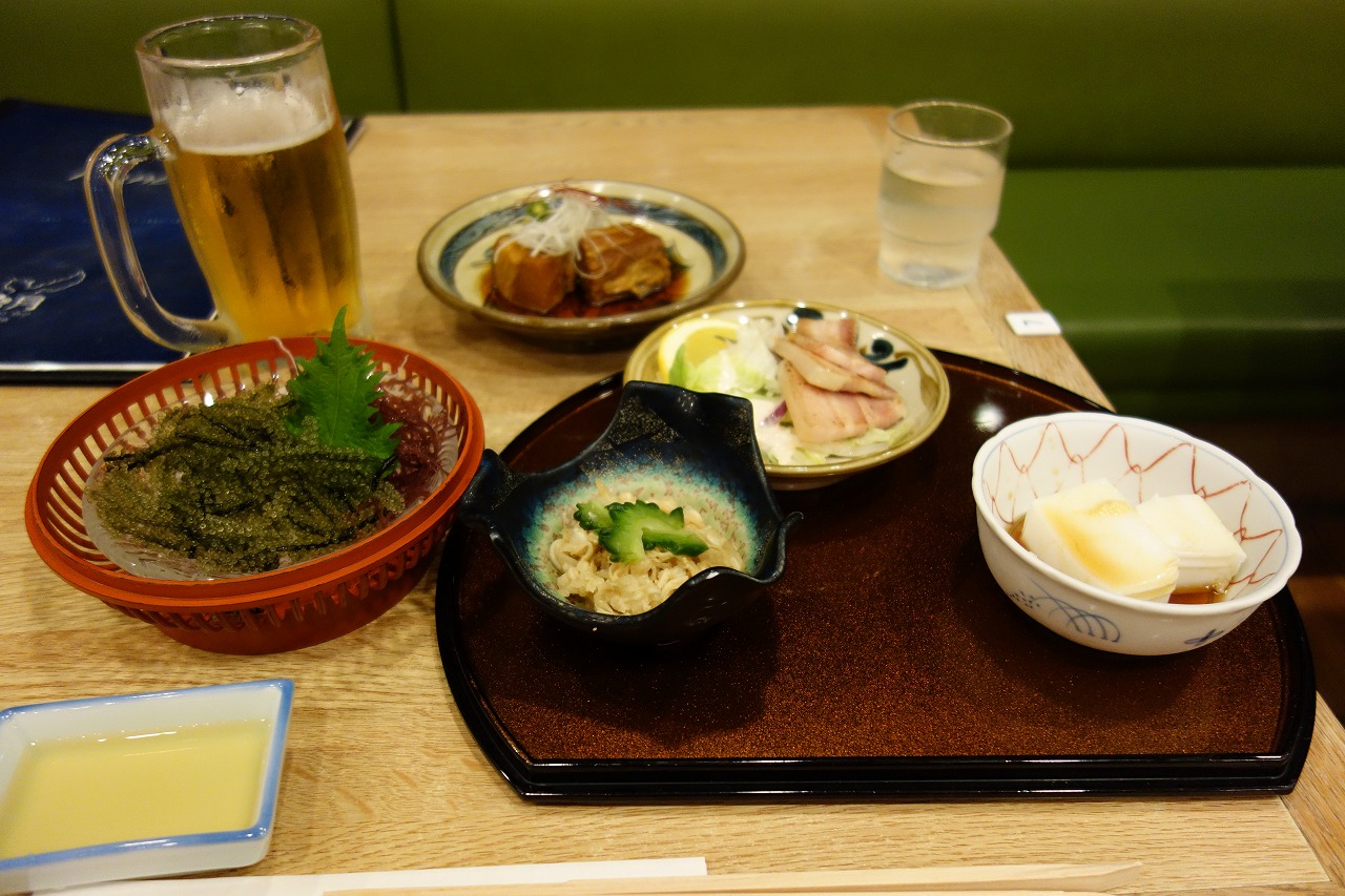 オリオンに海ぶどう、ラフテーなど沖縄の気分を満喫できた。