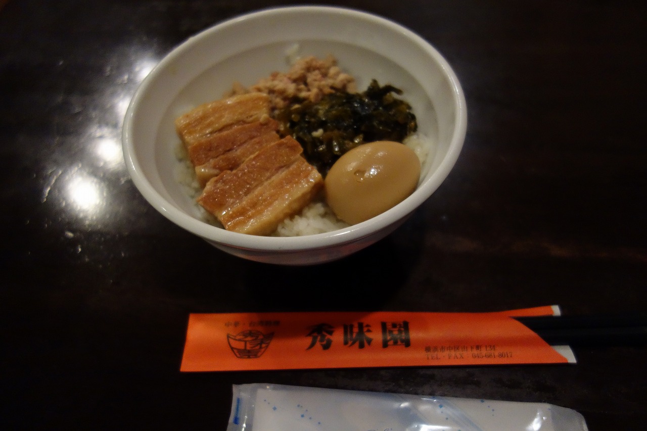 日本国内の中華料理店では、なかなか扱っていないルーローハンを食べたくて横浜中華街へ。関帝廟近くに台湾の物産を多く扱う店が集中しているので、その中からこの店を選択。角煮とそぼろ状の肉がのったタイプのルーローハンだった。