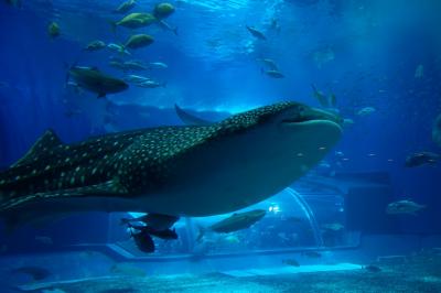 沖縄の観光地の定番ともいえる美ら海水族館。いろいろな水生動物が展示されており、圧巻はジンベイザメが泳ぐ大水槽。那覇から車では2時間近くかかり、アクセスはかなり大変だが、それでも足を延ばすだけの価値がある水族館だった。