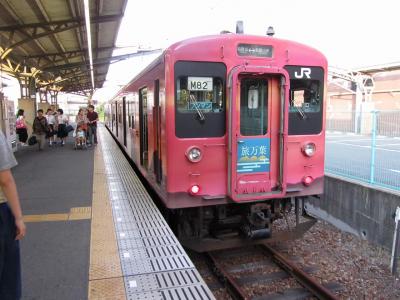 南海の和歌山市駅からJRの和歌山駅へ移動する際に利用。JR西日本にはよくある単色塗装の古い電車が走っている。