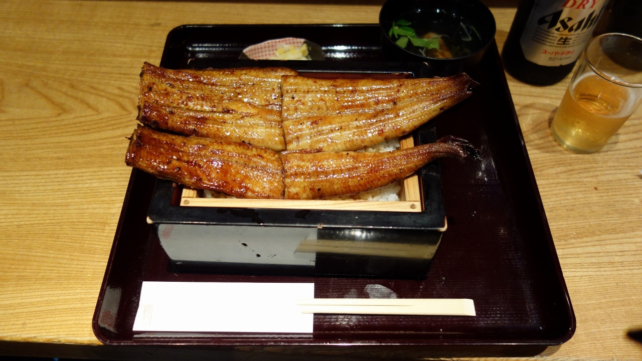 羽田空港第二ターミナル最上階にある和食レストラン。和牛のあぶり焼など焼き物がメインの居酒屋といった感じ。土用の丑の日ということもあり、うな重の特上を注文。お重からはみ出るほど大きなウナギが乗っており、食べ応え十分。