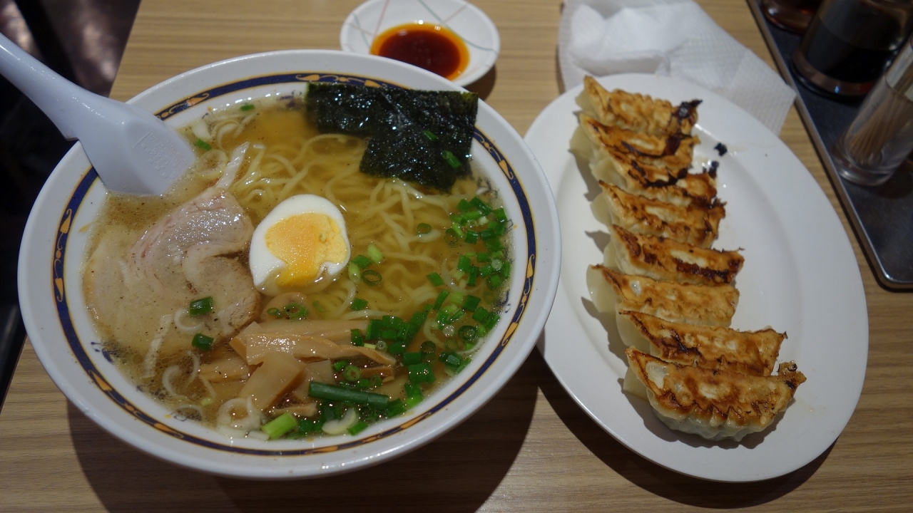 宇都宮駅の駅ビル「PASEO」の中に入っている、ご当地名物宇都宮餃子の店。改札階にあり、土産物店が並ぶエリアにある。チーズやシソなどが入った変わり種の餃子がそろっており、「食べ比べ」セットもある。今回はその8種食べ比べと、これまた栃木のご当地「佐野ラーメン」を注文。食べ比べは具が表示されているわけではないので、何の具かは食べてのお楽しみ。