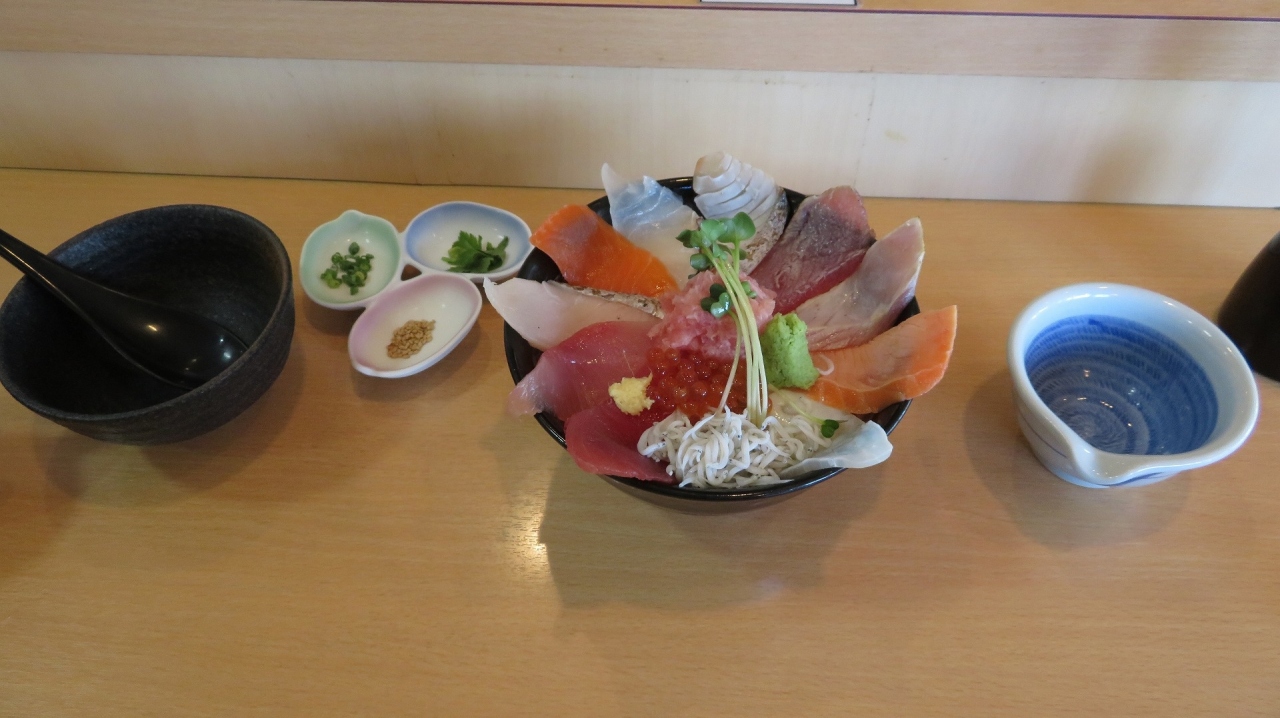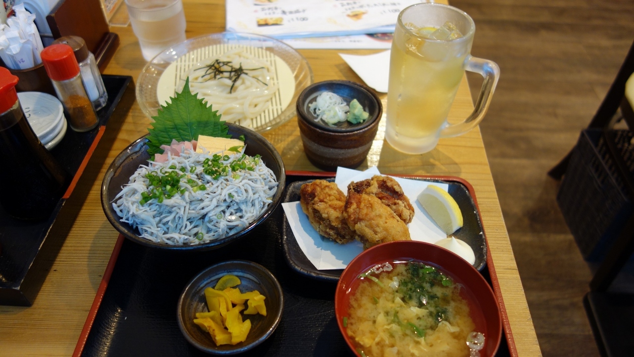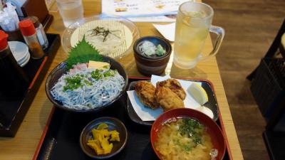 藤沢の小田急百貨店3階のフードコート内にある、海鮮料理の店。どんぶり物が充実しており、せっかくなので、ご当地の名産しらすを使った「しらす丼とうどん」のセットを注文。ごはんが見えないくらいたっぷり釜揚げしらすが乗っており、満足。