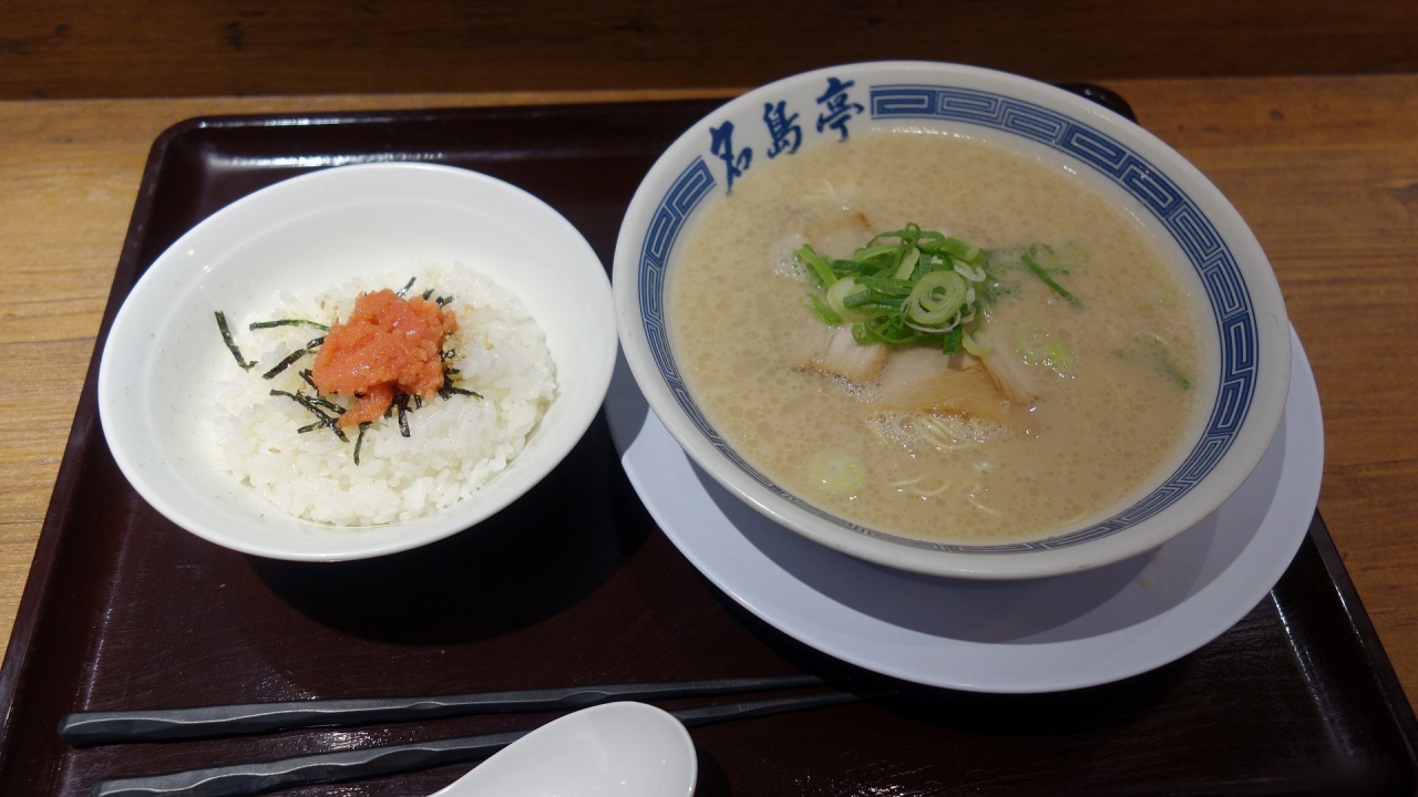 博多駅新幹線のりばの下、デイトス博多内「博多めん街道」内にある博多ラーメンの店。ラーメンは博多の定番「とんこつ」と「醤油とんこつ」がある。ランチには、ラーメンに明太子ごはんをつけたセットで1000円以内と今どき有難い価格。