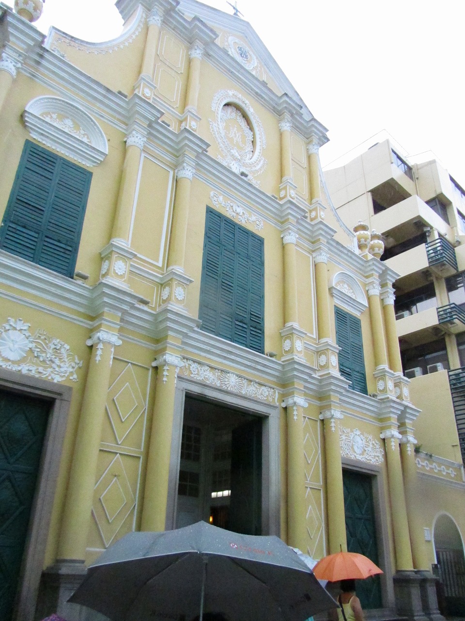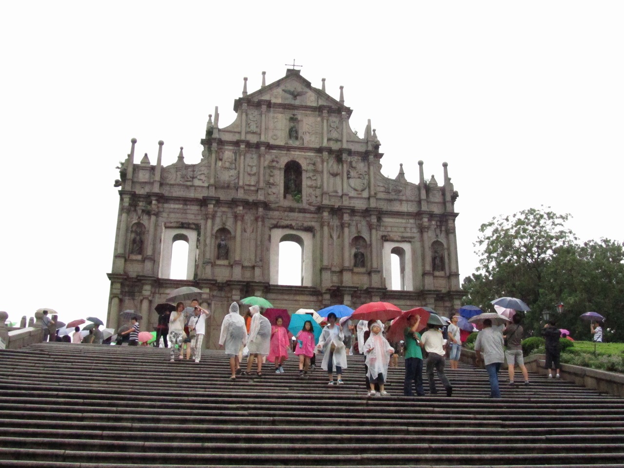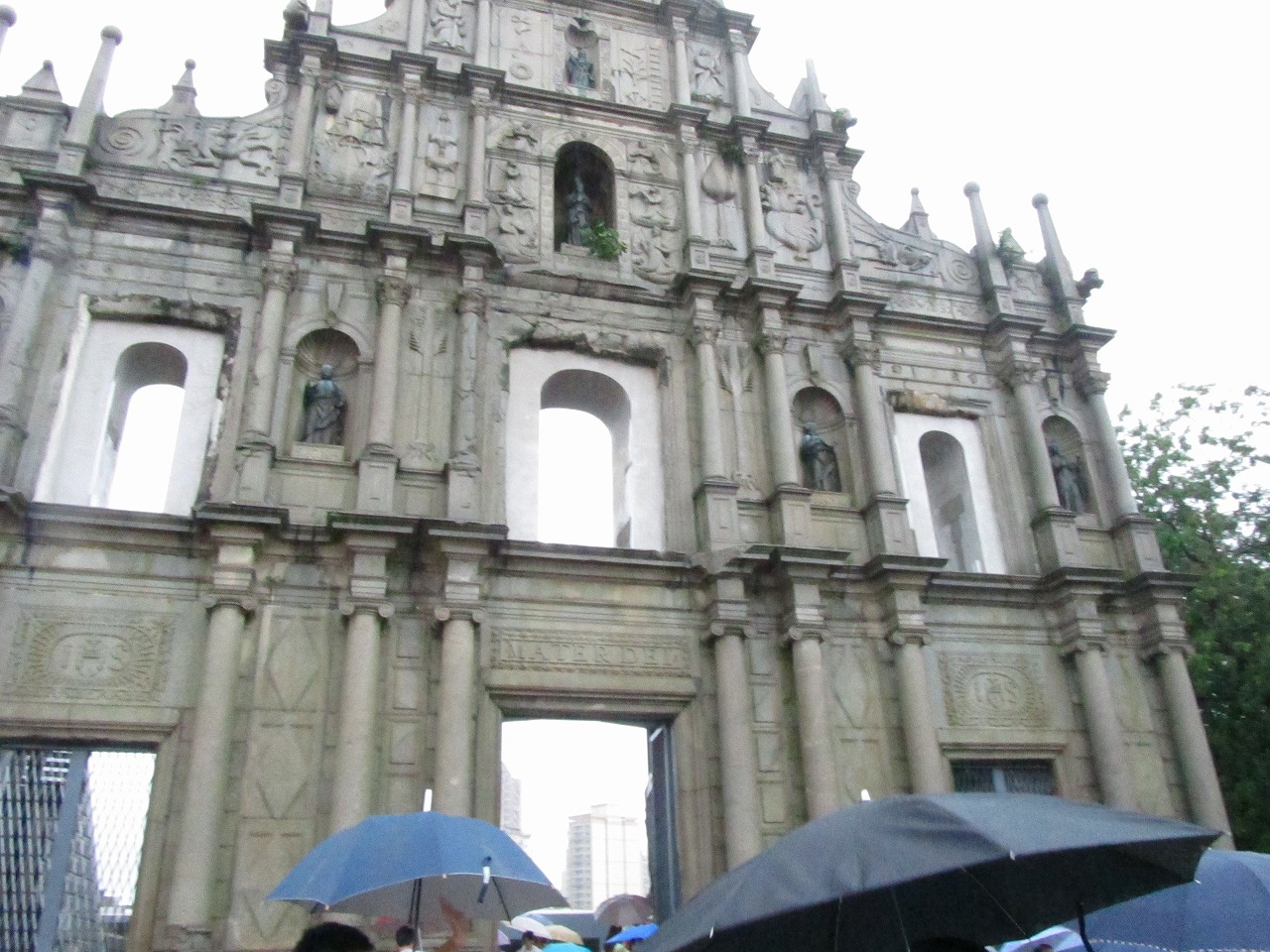 マカオの世界遺産で外せない観光スポットの一つだと思う。表面のレリーフが美しい。上のほうに天使に踏まれる悪魔の像が残っているが、聞けば悪魔とは徳川家康とのこと。ちょうどキリスト教の禁教令が出たころの建物なので、日本の歴史との絡みがこんな形で残っているのは面白い。