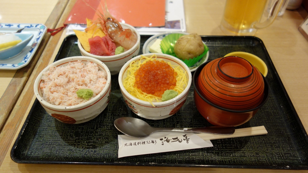 新千歳空港の3階レストラン街にある海鮮料理のお店。2階の広場からエスカレータを上ってすぐ目の前にあり、アクセスは抜群。店舗の前には大きなメニュー見本が展示されており、選択に迷う。おつまみなども充実している。